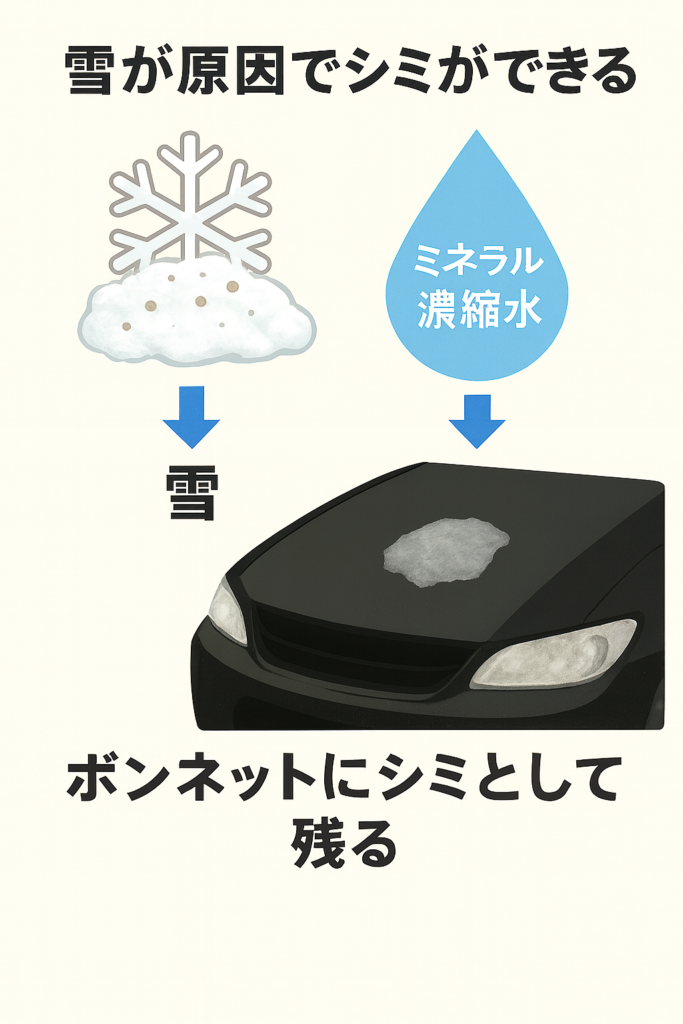 しかし雪のシミは、コーティング層や塗装面へ非常に強いダメージを与えてしまいます。